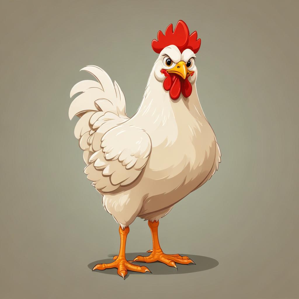 A white chicken stands on a gray background