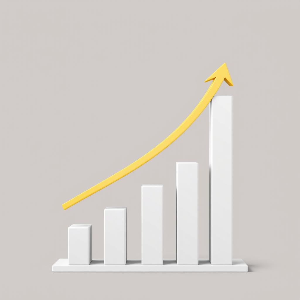 A white bar graph showing an upward trend, with a yellow arrow pointing upwards.