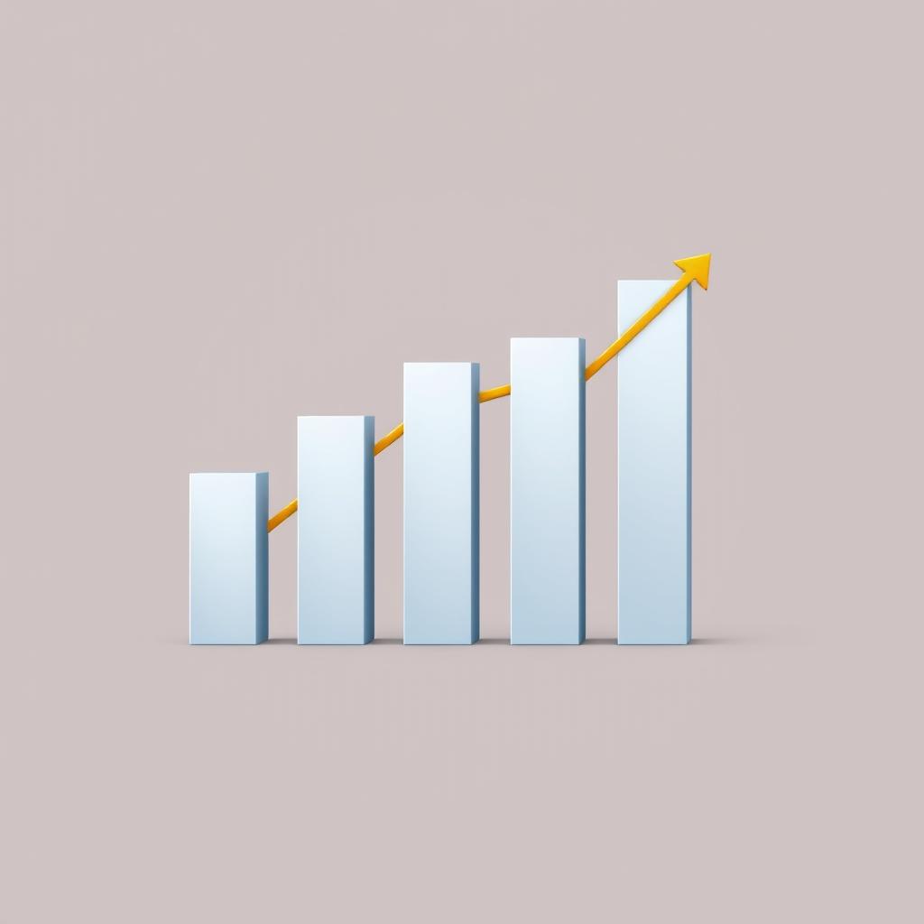 A blue bar graph with a yellow upward arrow shows growth
