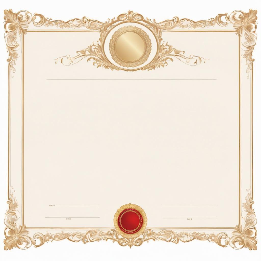 A blank certificate with an ornate gold frame, a gold seal at the top, and a red seal at the bottom.