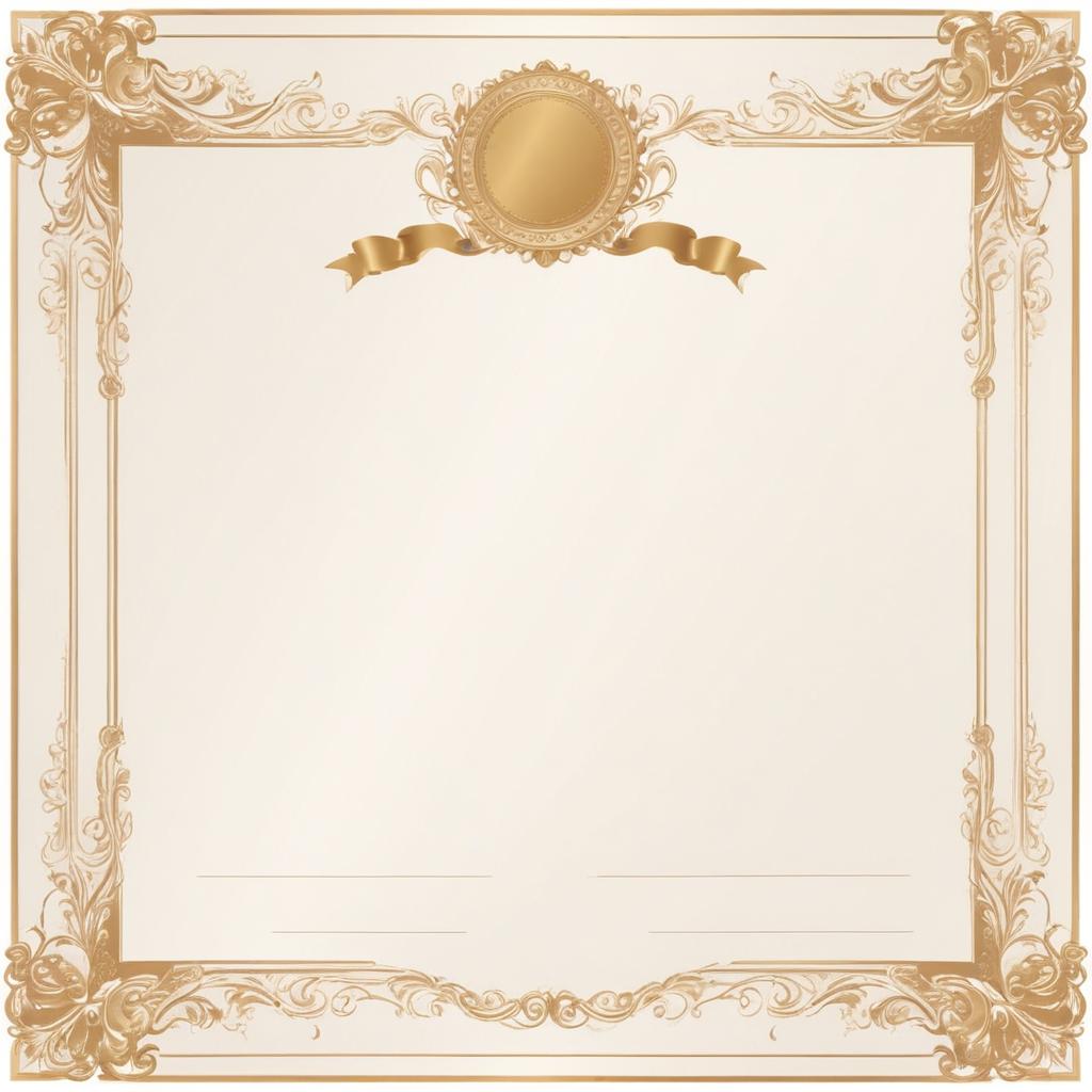 A blank certificate with a gold frame, a circular seal with a ribbon, and a gold-colored background.