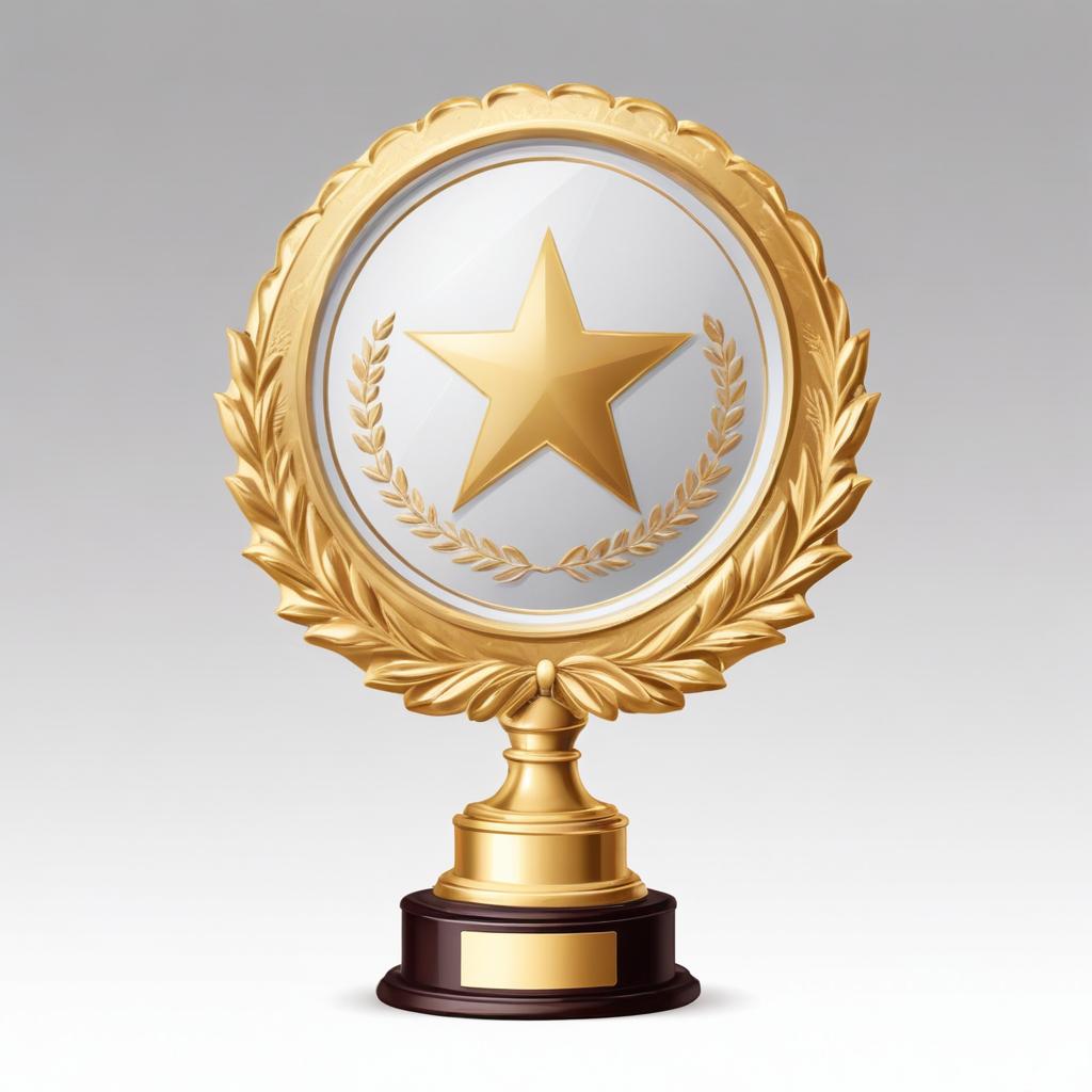 A gold trophy with a star and laurel wreath
