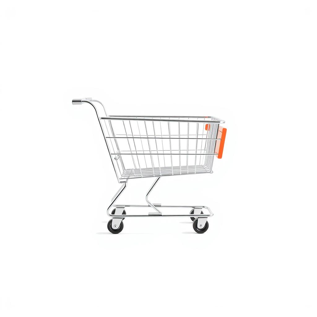 background, basket, cart, chrome, consumer, empty, goods, grocery, handle, isolated, orange, retail, shopping, side, silver, store, supermarket, trolley, view, white