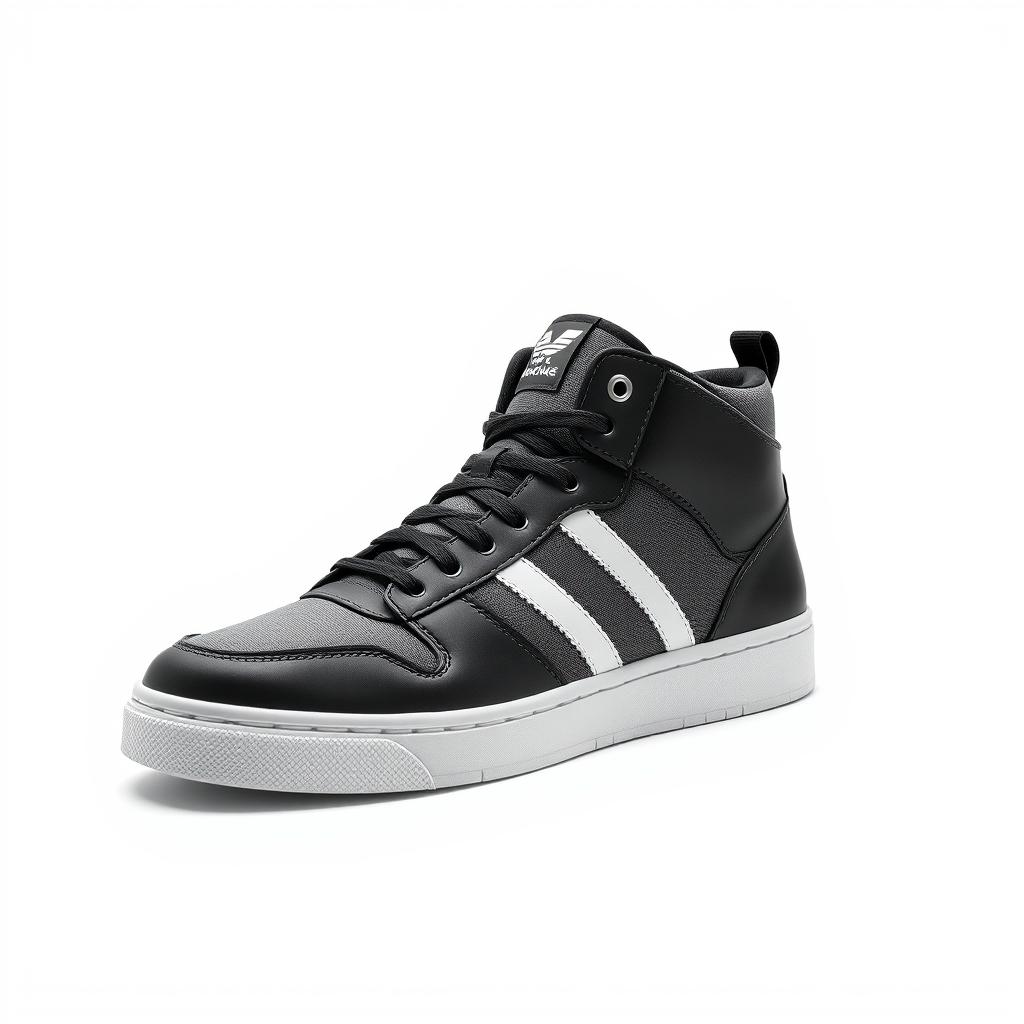 athletic, black, casual, comfortable, durable, fashion, footwear, high-top, laces, leather, men's, shoe, shoes, sneaker, sole, stripe, style, trend, wear, white