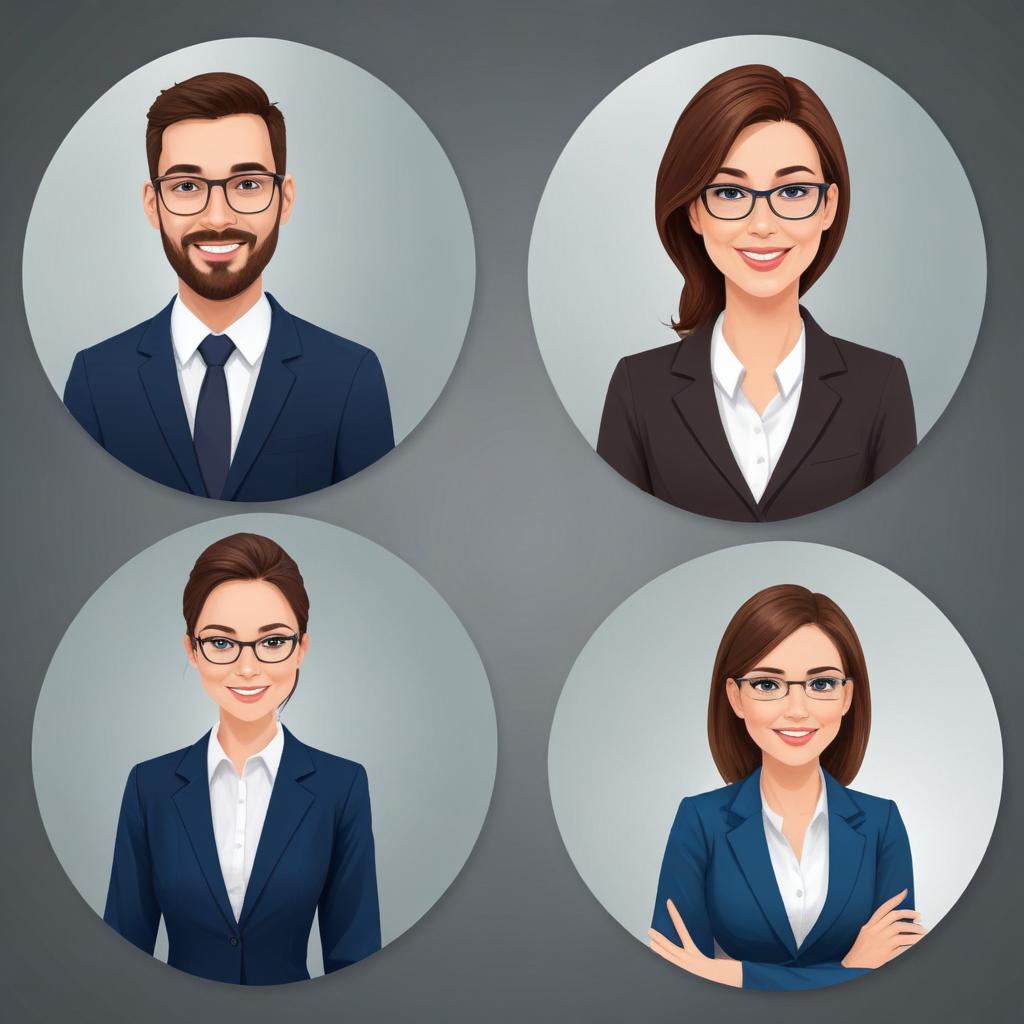 A digital illustration of four business professionals with different hairstyles, wearing glasses, and business attire.
