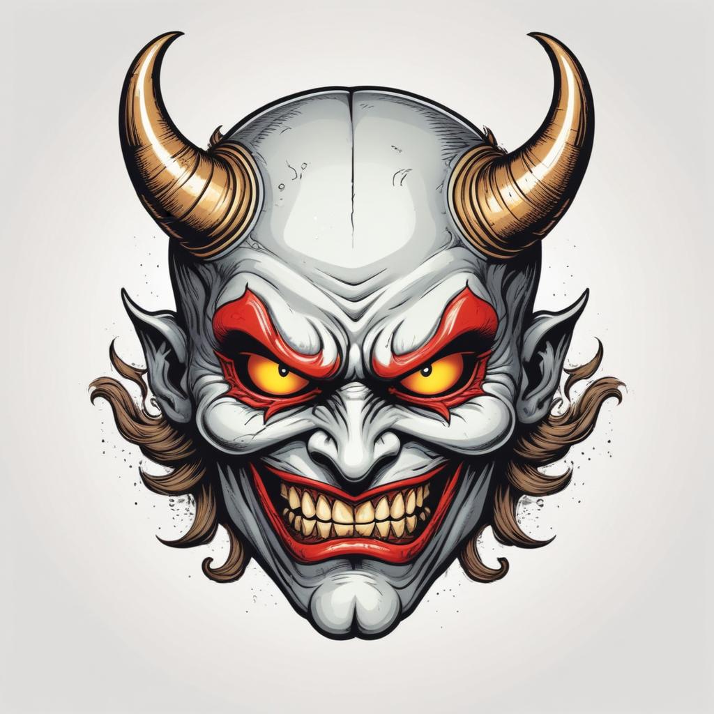 A digital illustration of a devil's head, with horns, pointy ears, and a wide, toothy grin.