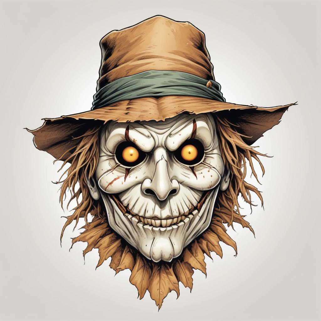 A creepy scarecrow with a wide grin