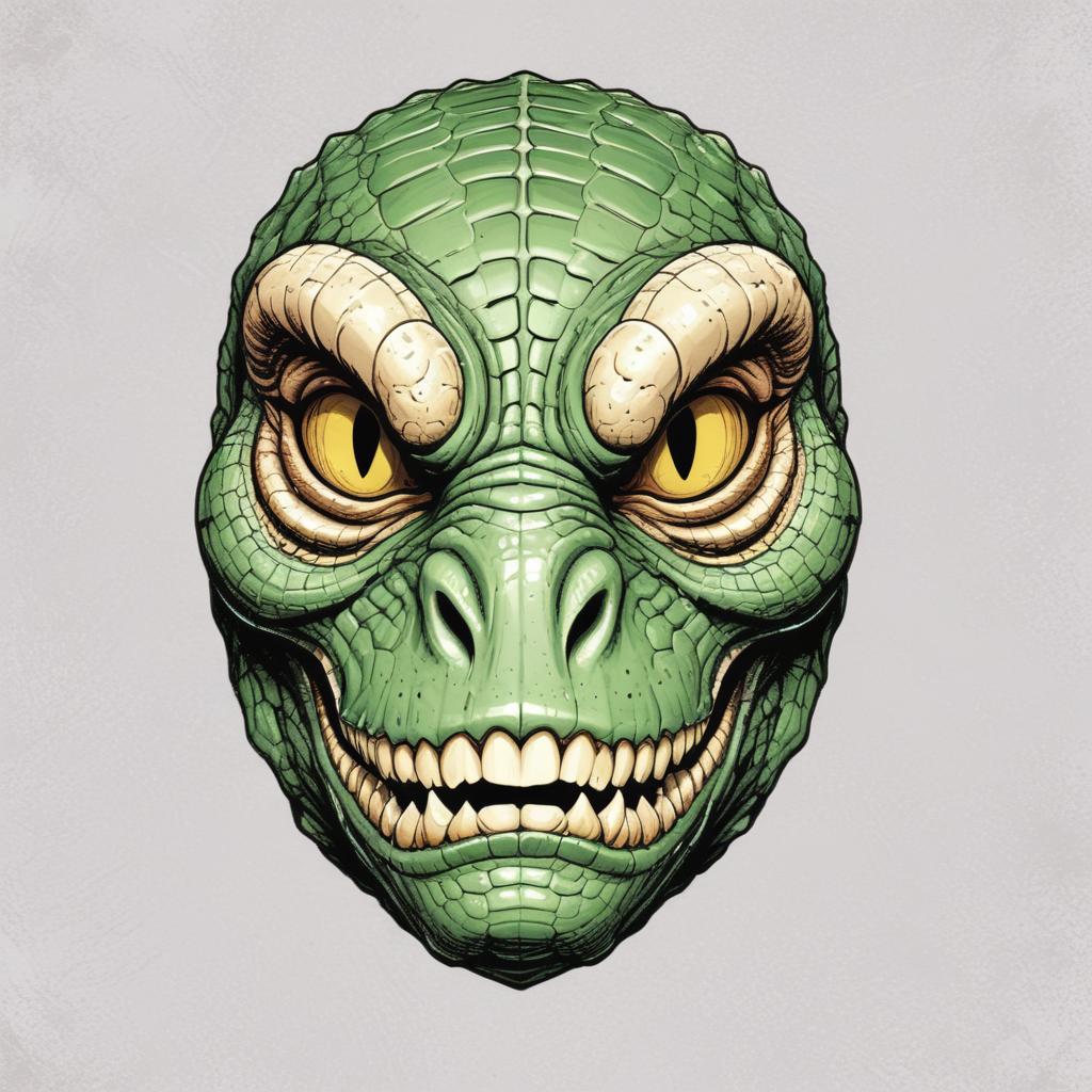 animal, art, artwork, creature, design, digital, dinosaur, drawing, eyes, fantasy, graphic, green, head, illustration, monster, prehistoric, reptile, sharp, teeth, yellow