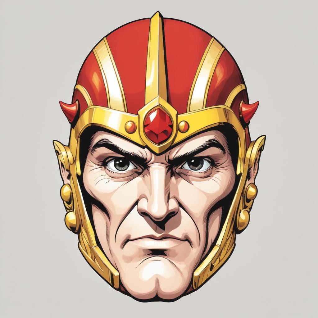art, artwork, battle, character, comic, design, digital, expression, face, fantasy, game, gold, helmet, hero, horns, illustration, look, red, serious, warrior