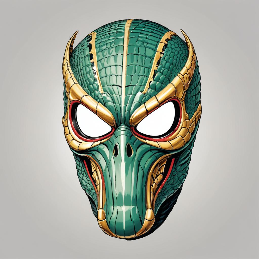 animal, art, beak, comic, cosplay, costume, creature, design, digital, drawing, eyes, fantasy, gold, graphic, green, illustration, mask, monster, reptilian, superhero