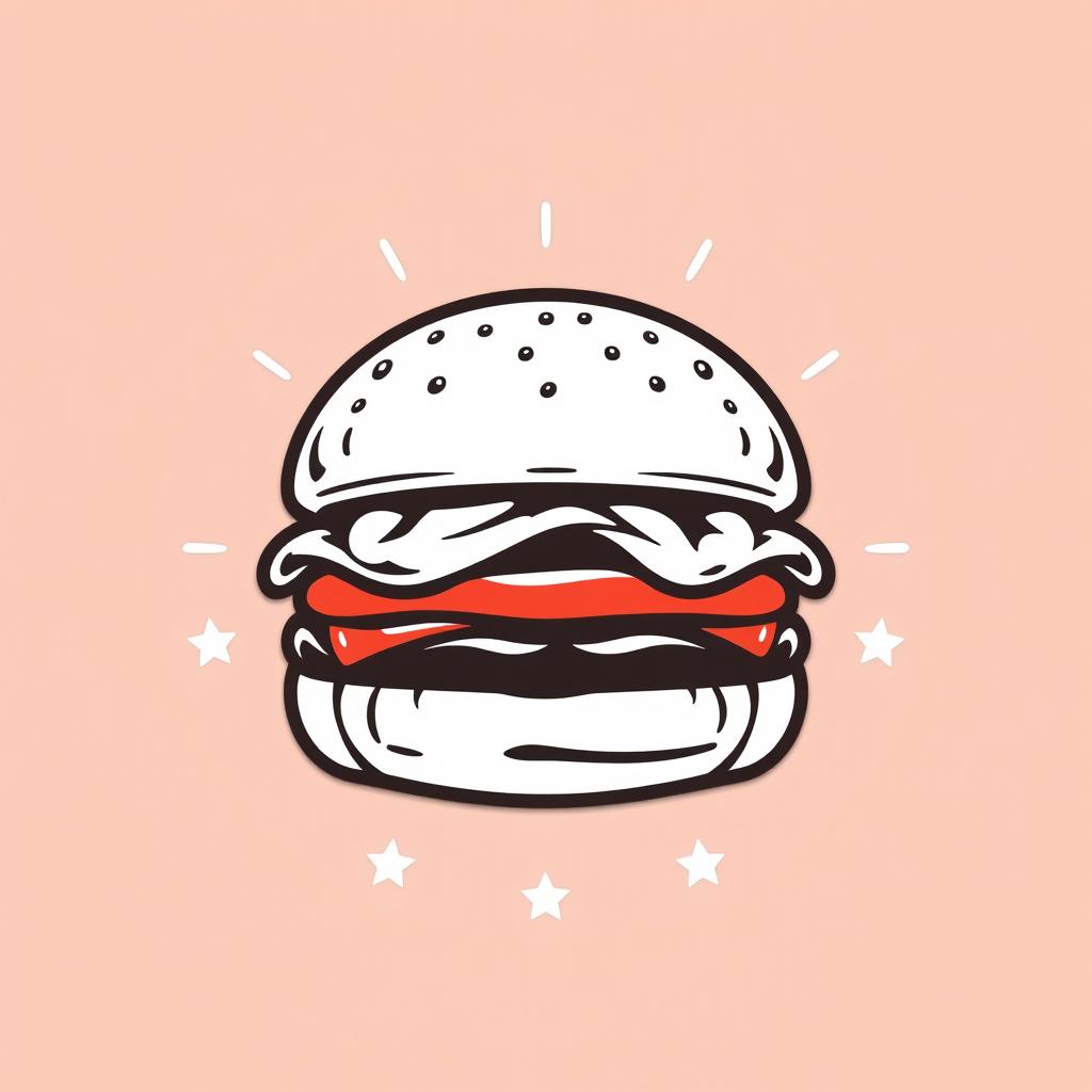 background, burger, cartoon, cheeseburger, design, fast, food, graphic, hamburger, illustration, junk, light, meal, pink, red, simple, snack, stars, vector, white
