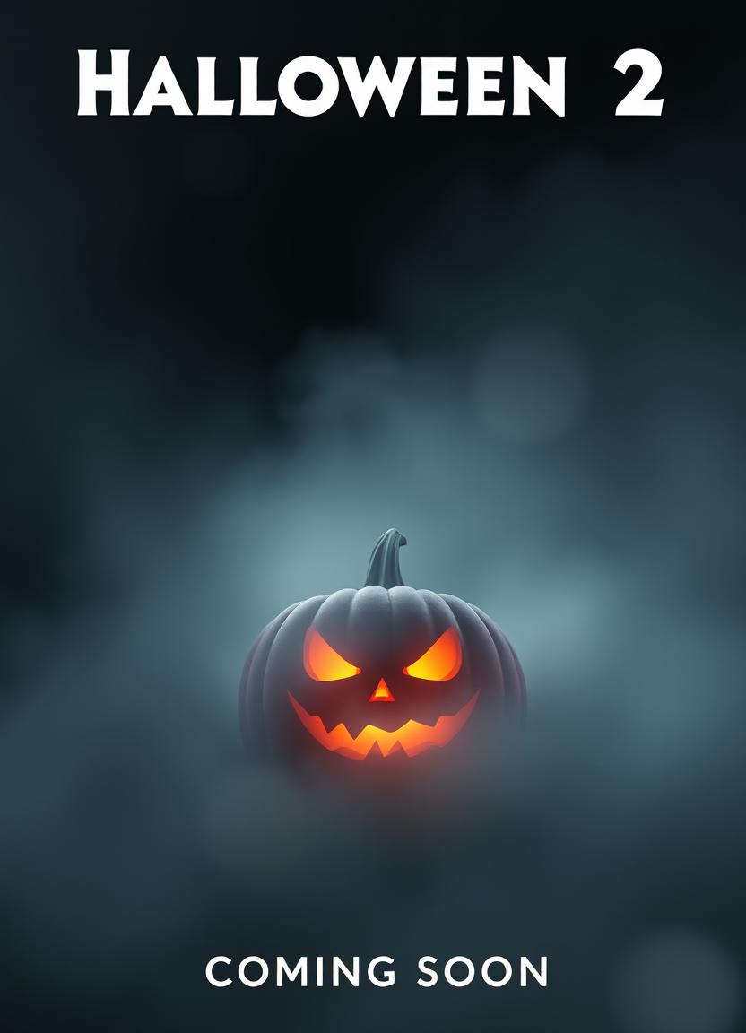 A spooky jack-o'-lantern glows in a misty dark setting with Halloween 2 and Coming Soon at the top and bottom