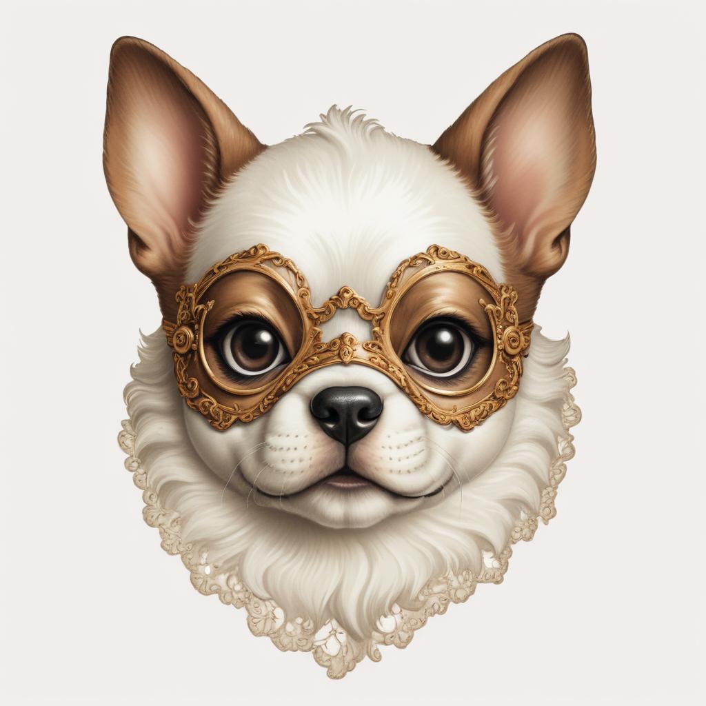 adorable, animal, brown, canine, chihuahua, closeup, cute, dog, ears, eyes, face, furry, gold, illustration, looking, mask, pet, portrait, viewer, white
