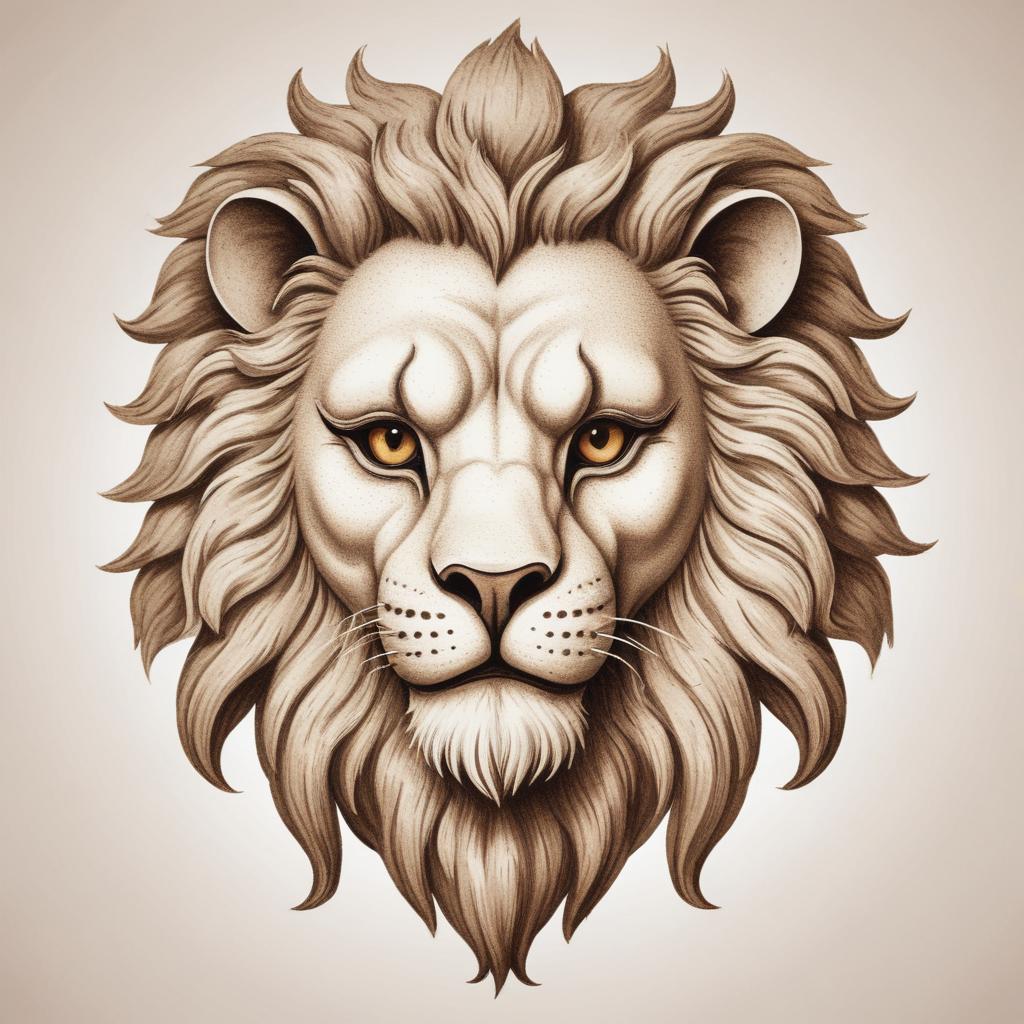 A digitally-drawn, sepia-toned illustration of a lion's head with a flowing mane.