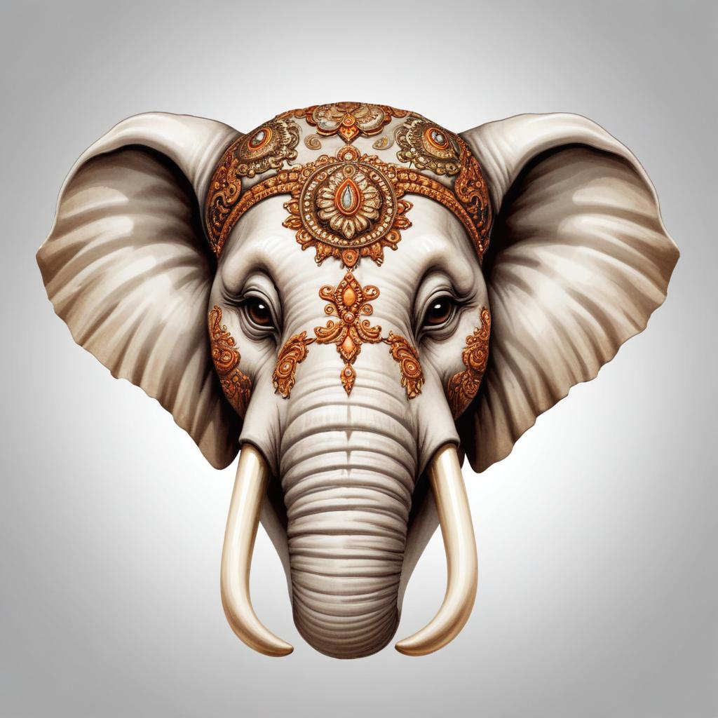 animal, art, artwork, asian, culture, decorative, design, digital, drawing, elephant, gold, graphic, head, illustration, indian, intricate, ornate, patterns, white, wildlife