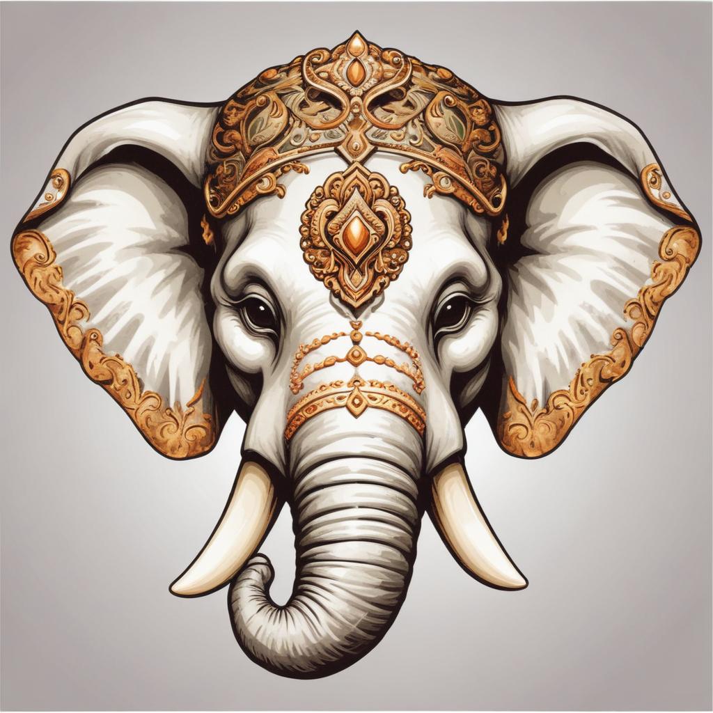 animal, art, crown, culture, elephant, gold, head, hindu, illustration, indian, luck, ornate, pattern, power, religion, spirituality, strength, symbolism, white, wisdom