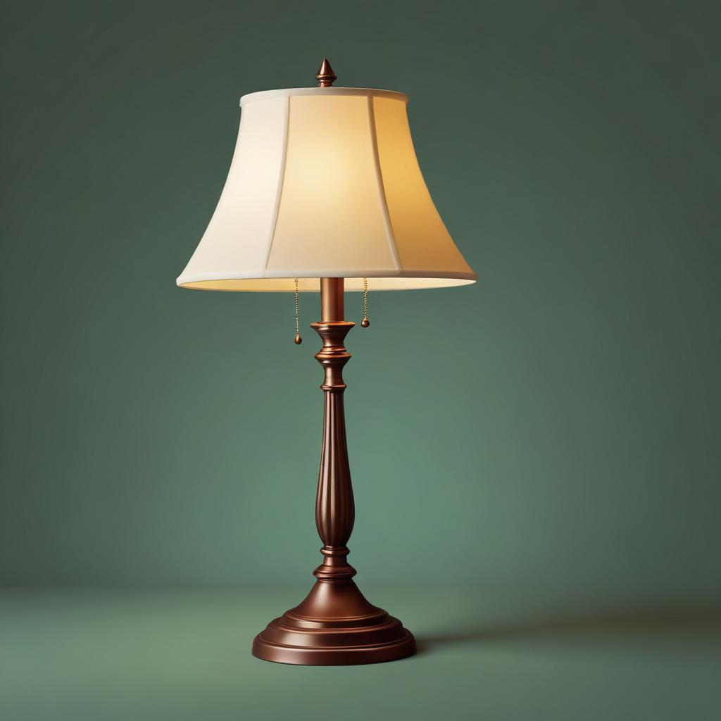 Bronze lamp with white shade on teal surface