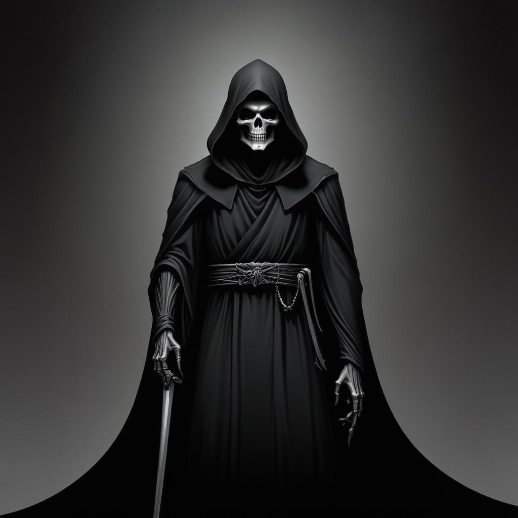 black, creepy, dark, death, fantasy, figure, gothic, grim, halloween, hooded, horror, mysterious, reaper, robe, room, skeletal, skeleton, spooky, standing, supernatural