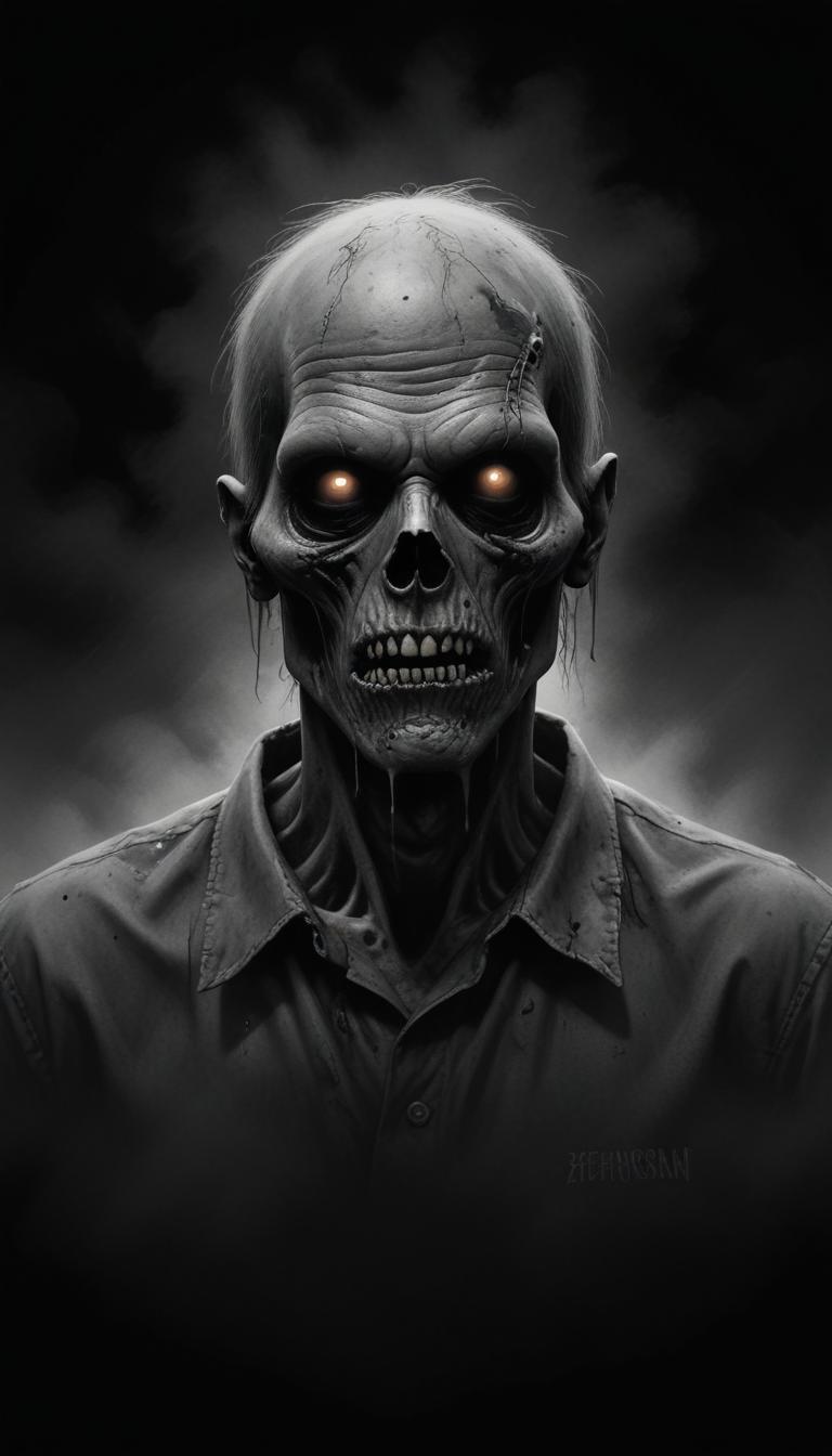 art, artwork, black, creature, creepy, dark, digital, eyes, face, grayscale, halloween, horror, illustration, monster, mouth, painting, scary, undead, white, zombie