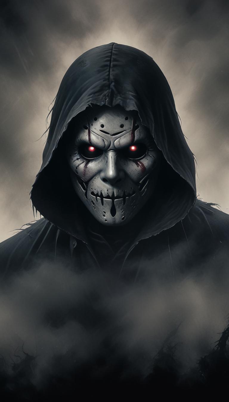 background, cloudy, creepy, dark, evil, eyes, figure, halloween, hooded, horror, looking, mask, mysterious, scary, sinister, spooky, staring, viewer, villain, white