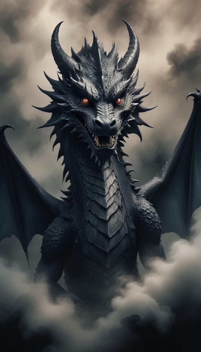 beast, black, clouds, creature, dangerous, dark, dragon, fantasy, fearsome, flying, horns, intimidating, legendary, magical, monster, mythical, powerful, scary, sky, wings