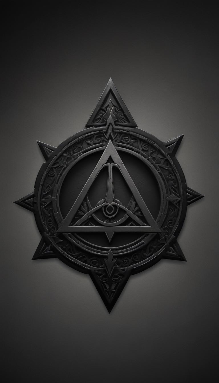 abstract, art, background, black, circle, dark, design, detailed, eight-pointed, emblem, eye, geometric, graphic, gray, illustration, ornate, star, symbol, three-dimensional, triangle