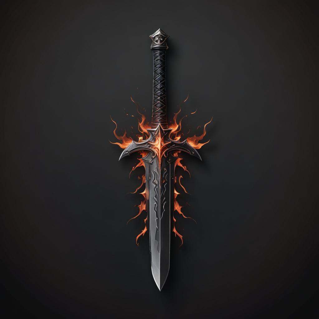 background, black, blade, dangerous, dark, design, epic, fantasy, fire, flaming, game, history, magic, medieval, metal, mythical, power, sharp, sword, weapon