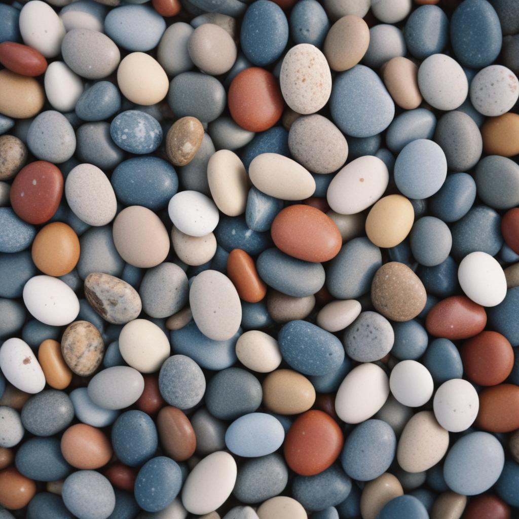 A close-up of smooth, colorful stones on a beach.