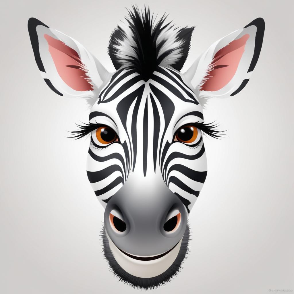 A close-up illustration of a cartoon zebra's face, featuring prominent black and white stripes, brown eyes, and a big, toothy grin.