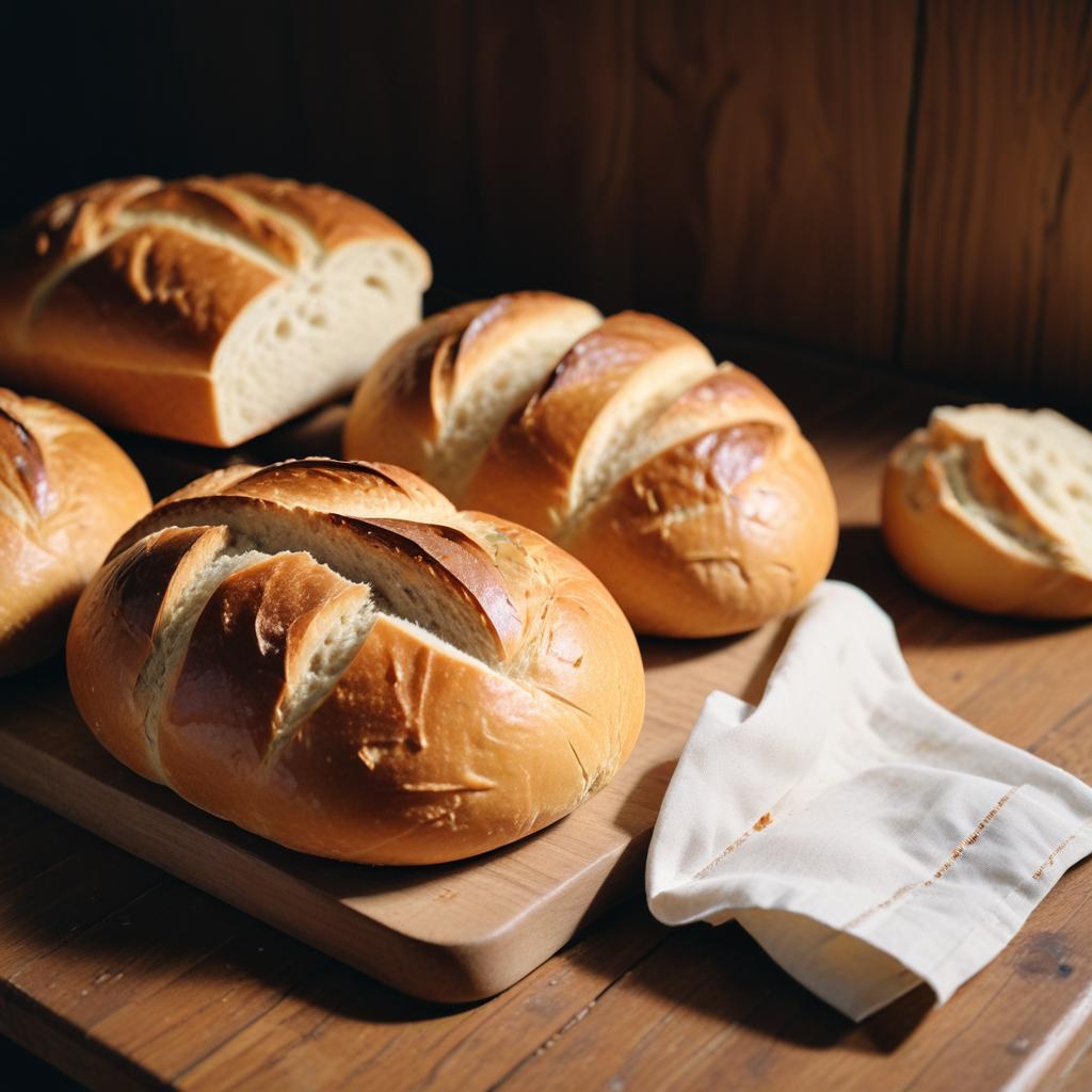 artisan, baked, bakery, baking, board, bread, brown, crusty, cutting, delicious, food, fresh, golden, kitchen, loaves, napkin, organic, table, white, wooden