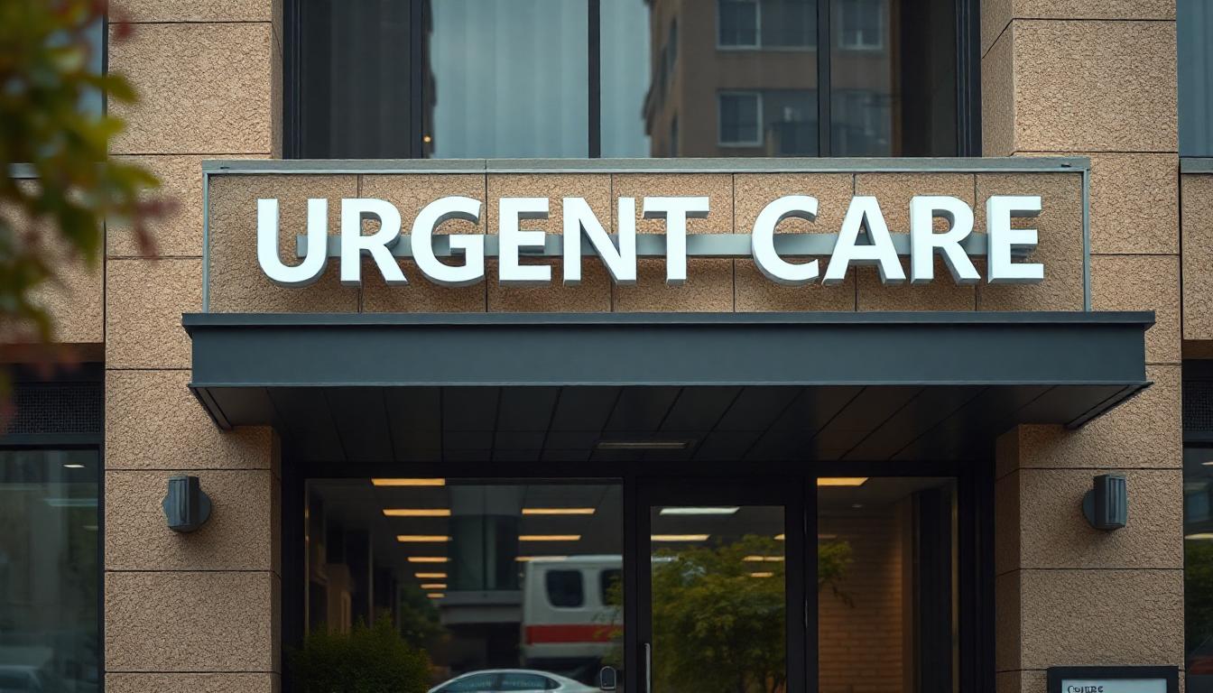 A large sign reading Urgent Care above the entrance to a medical facility.