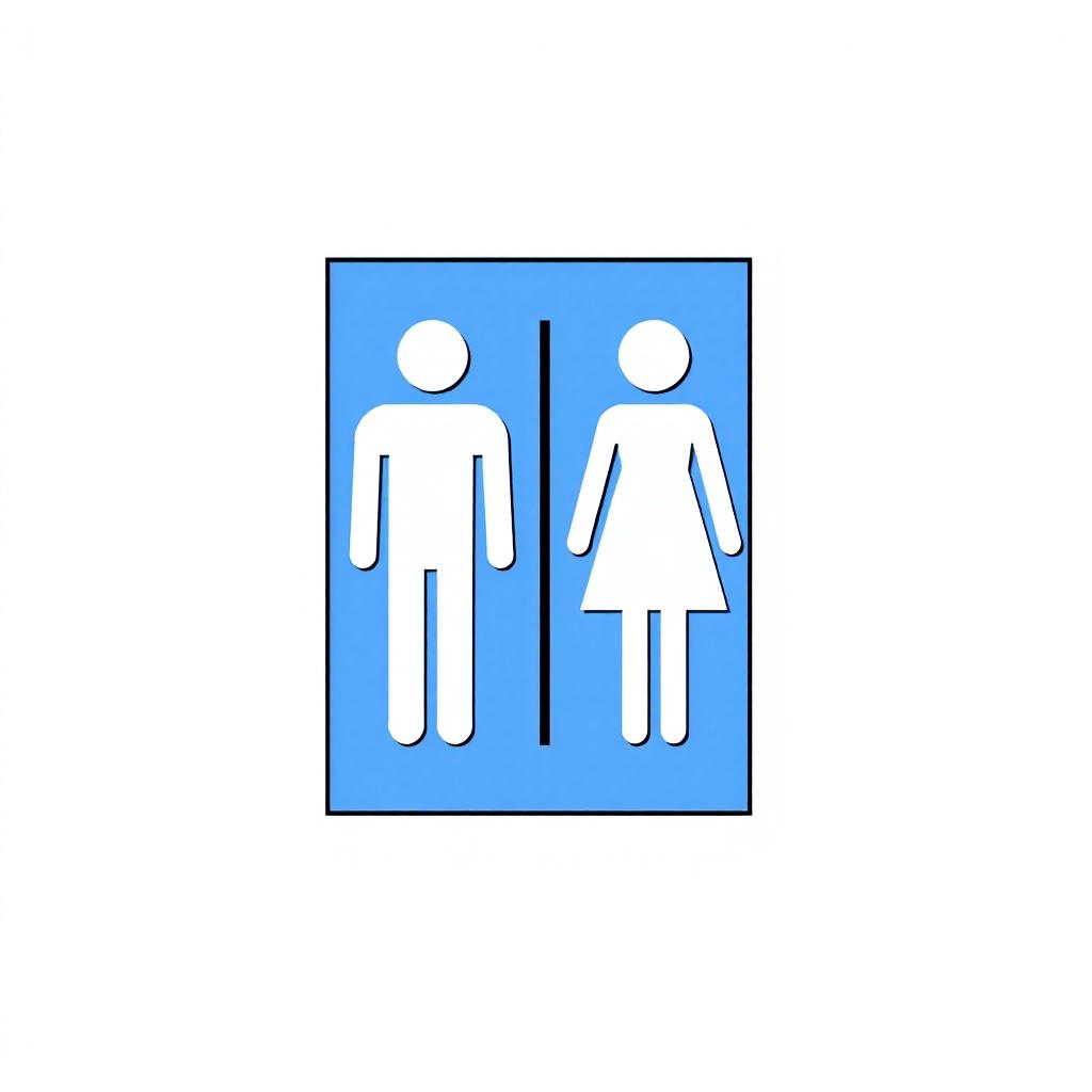 A blue square sign with a white stick figure of a man on the left side and a white stick figure of a woman on the right.
