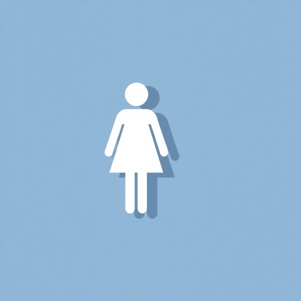 A white silhouette of a woman in a dress on a blue background with a shadow underneath.