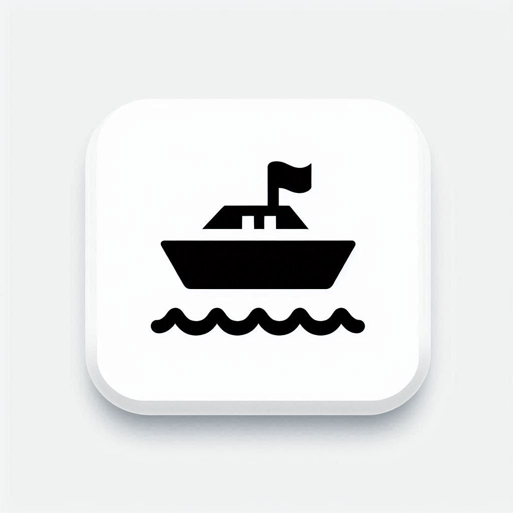 A simple black silhouette of a boat with a flag on top, sailing on wavy water. The icon is on a white square background.