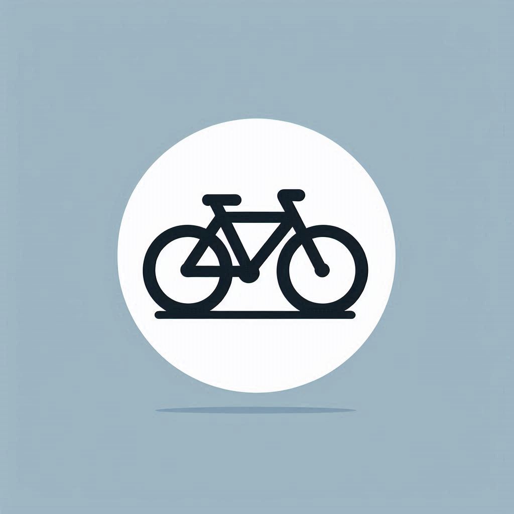 A black outline of a bicycle on a white circle with a gray background.