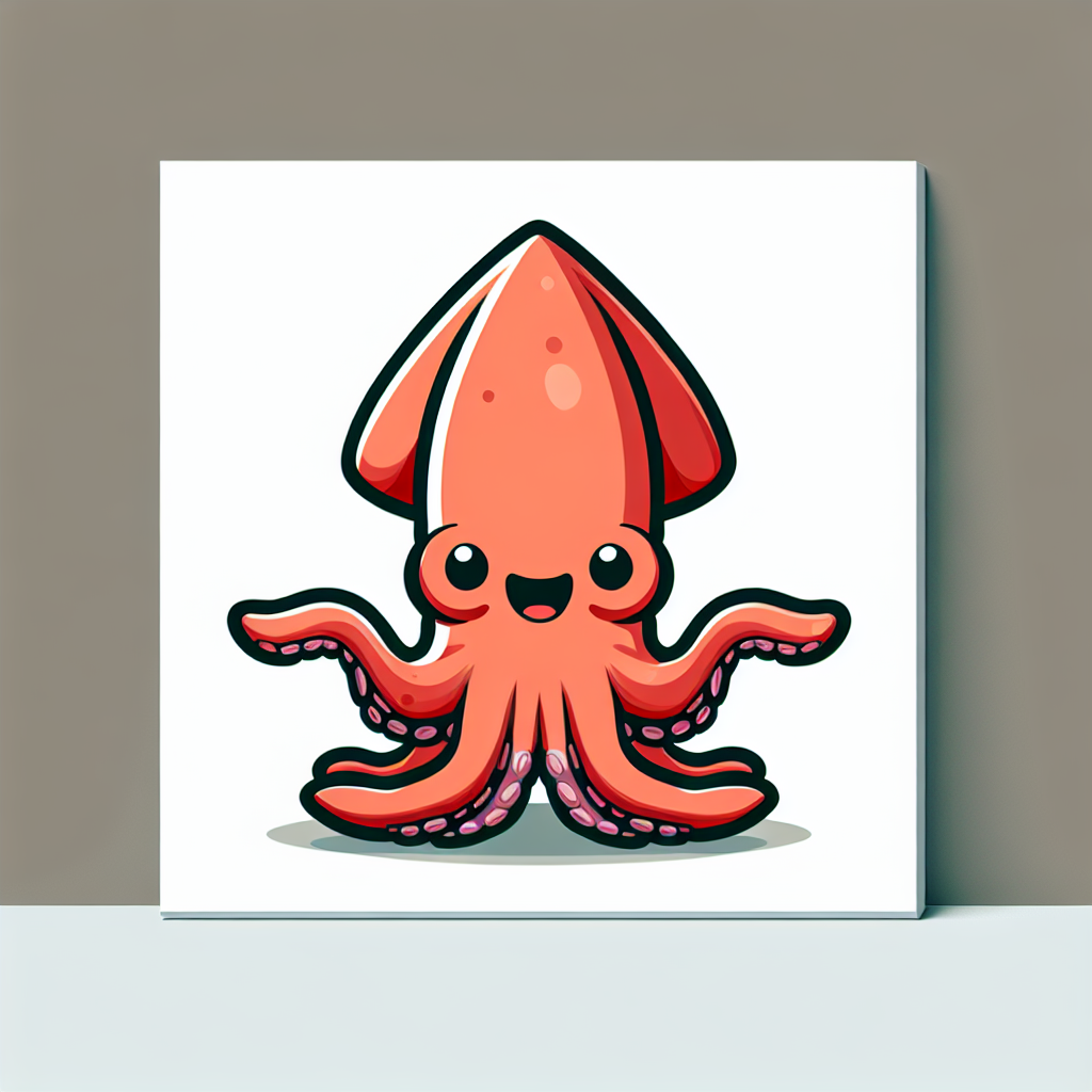 A cartoon squid with a red body and large eyes smiles at the viewer. The squid is on a white background.