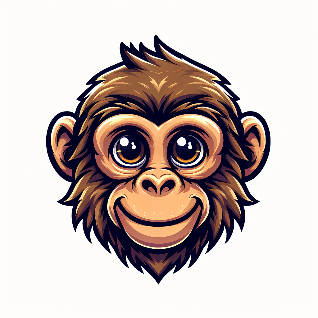 A cartoon image of a monkey's head with large eyes and a wide smile.