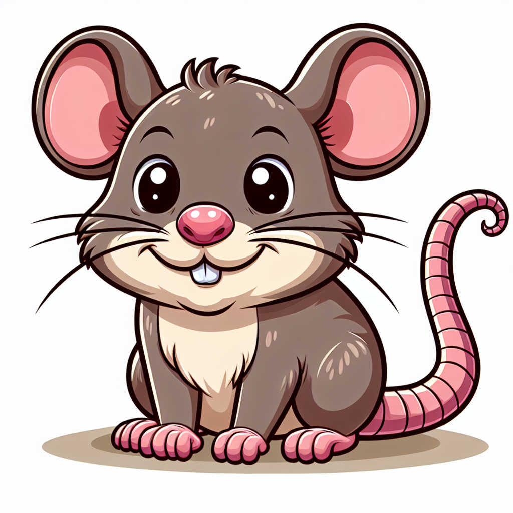 animal, art, big, brown, cartoon, cute, digital, drawing, ears, eyes, gray, happy, illustration, mouse, pink, rat, rodent, smile, tail, white