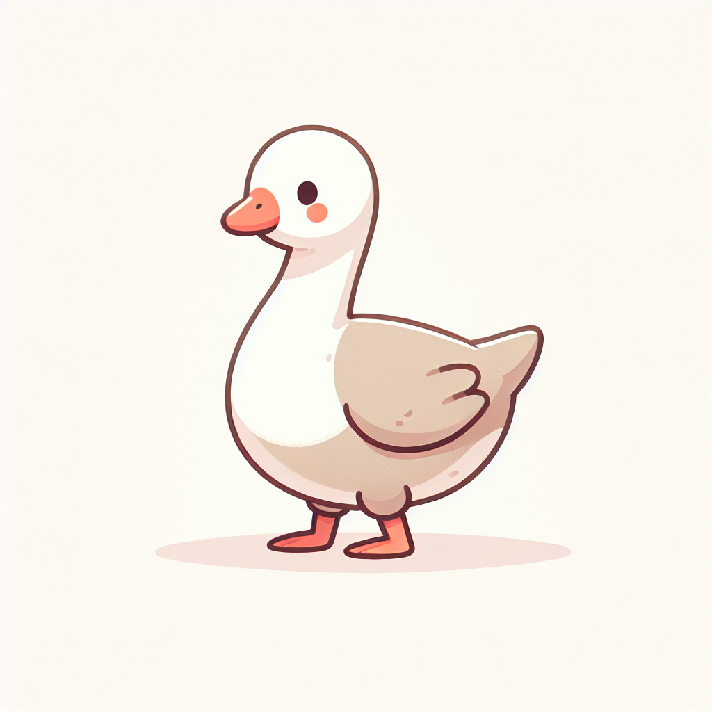 A cartoon goose with a white head, brown body, and pink feet stands on a white background.