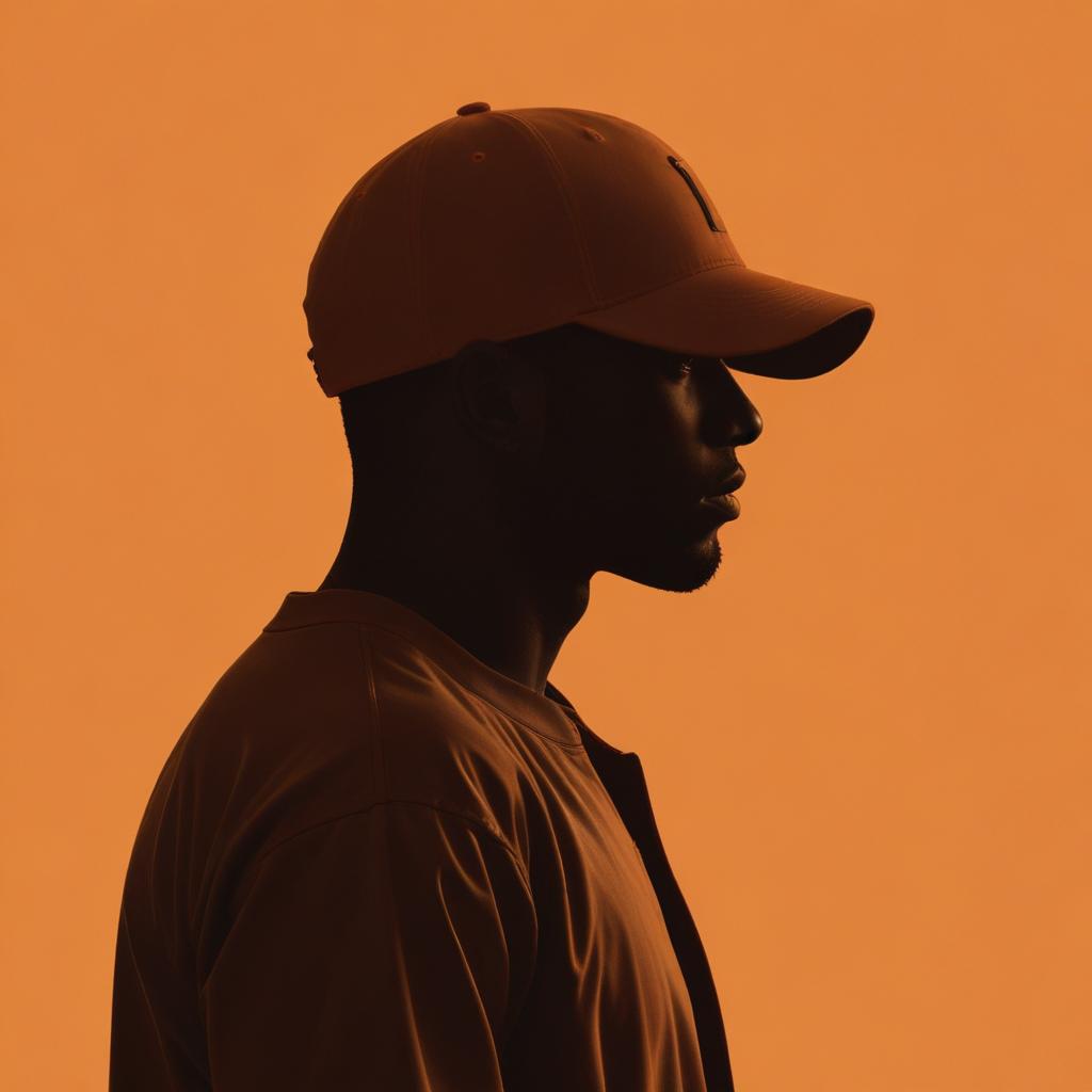 art, background, cap, contemporary, design, fashion, graphic, headshot, looking, man, minimalist, orange, portrait, pose, profile, shirt, silhouette, simple, standing, style