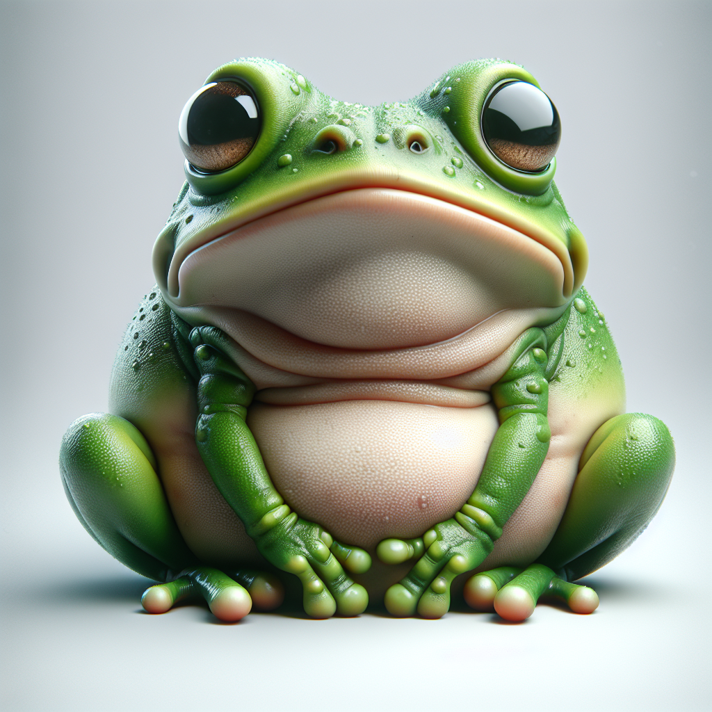 amphibian, animal, background, cartoon, chubby, clasped, crossed, cute, eyes, frog, green, hands, large, legs, nature, plump, sitting, surface, white, wildlife
