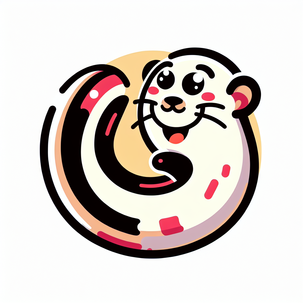 A cartoon otter with large eyes and a wide smile is curled up, its tail forming a circle around its body.