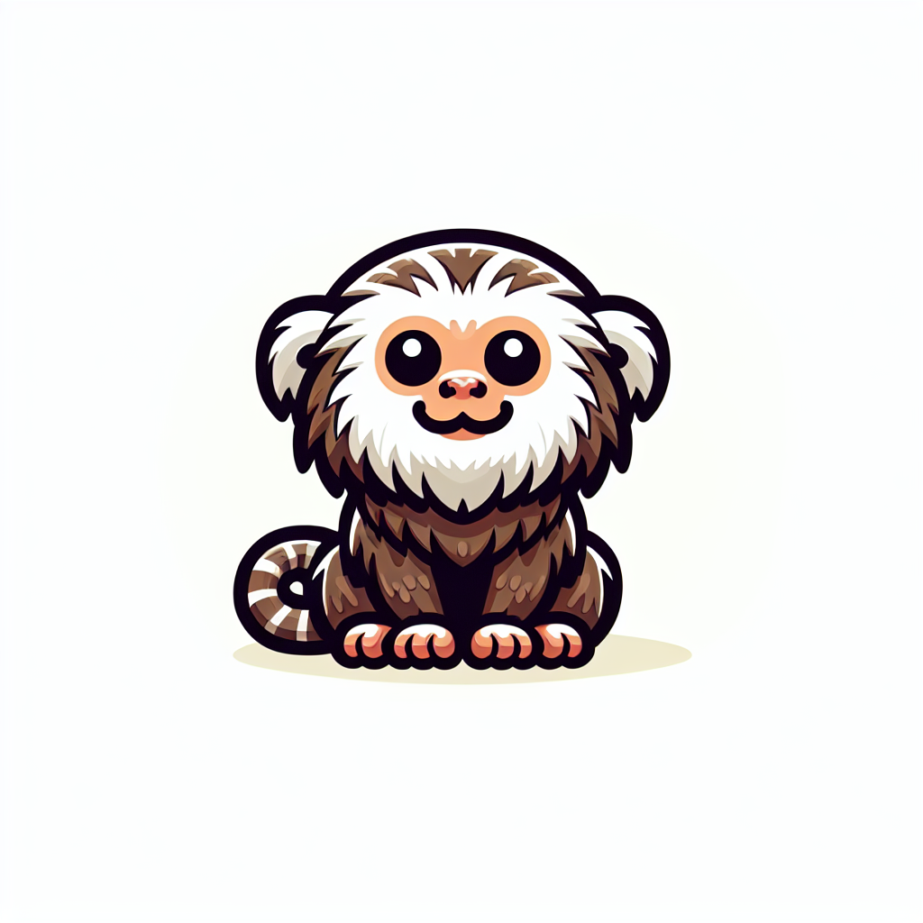 A cartoon illustration of a small, brown monkey with a white face and big eyes sits on a white background