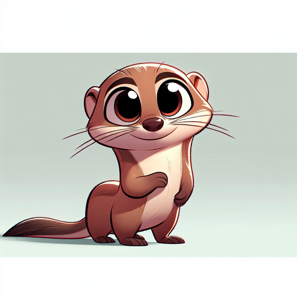 A cartoon otter with large eyes and a wide smile stands on a light gray background. It has brown fur and a long tail.