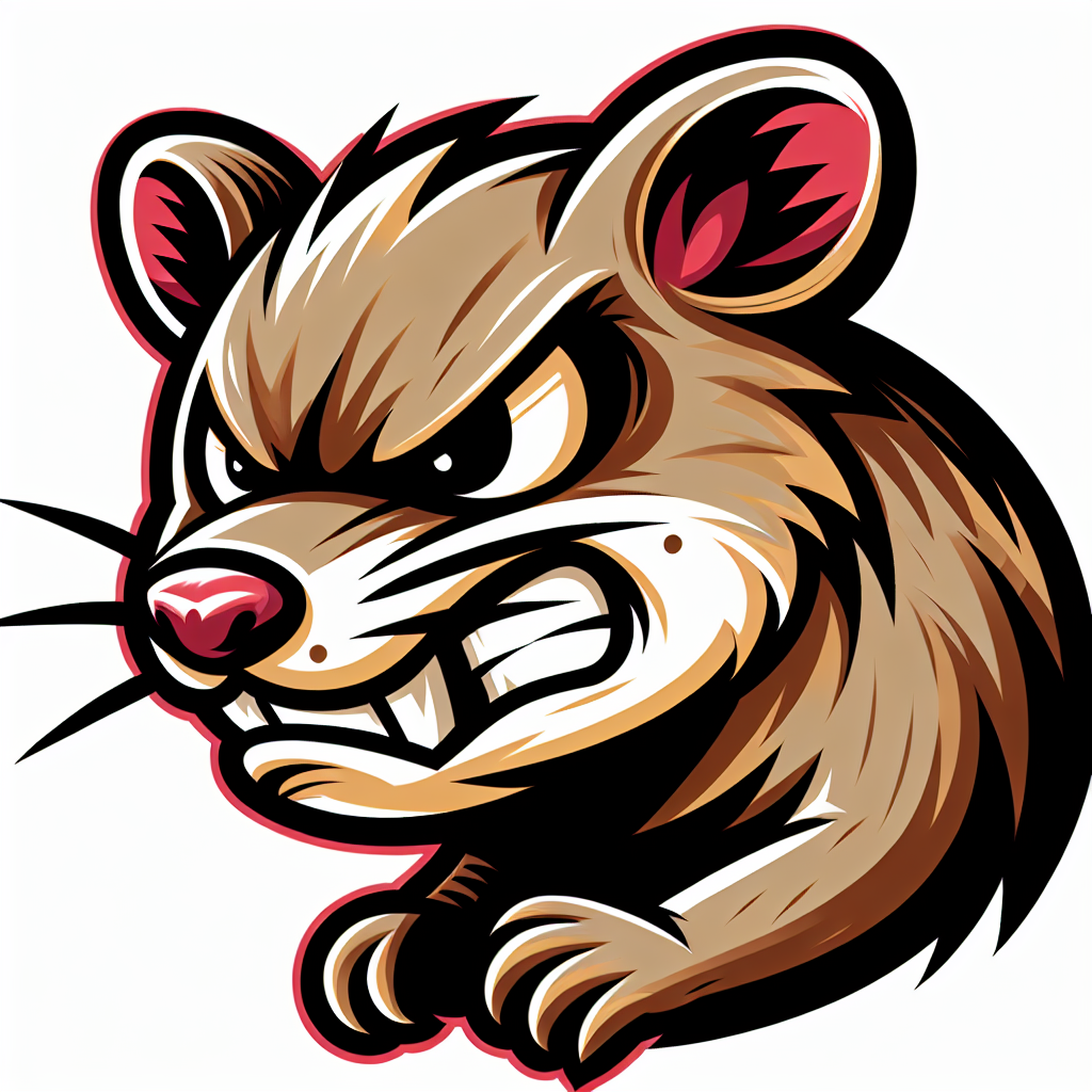 A cartoon mouse with sharp teeth and an angry expression. The mouse is looking directly at the viewer with a fierce glare.