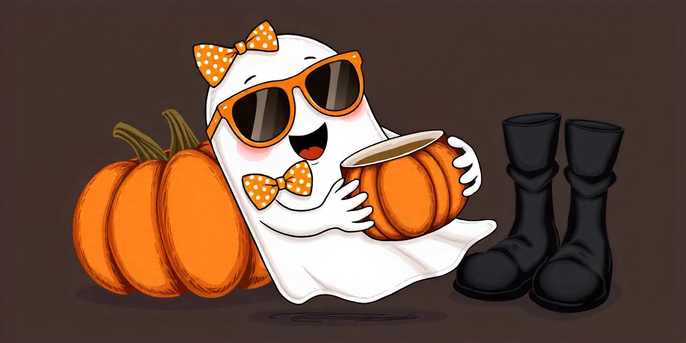 A happy ghost is enjoying pumpkin spice in the fall