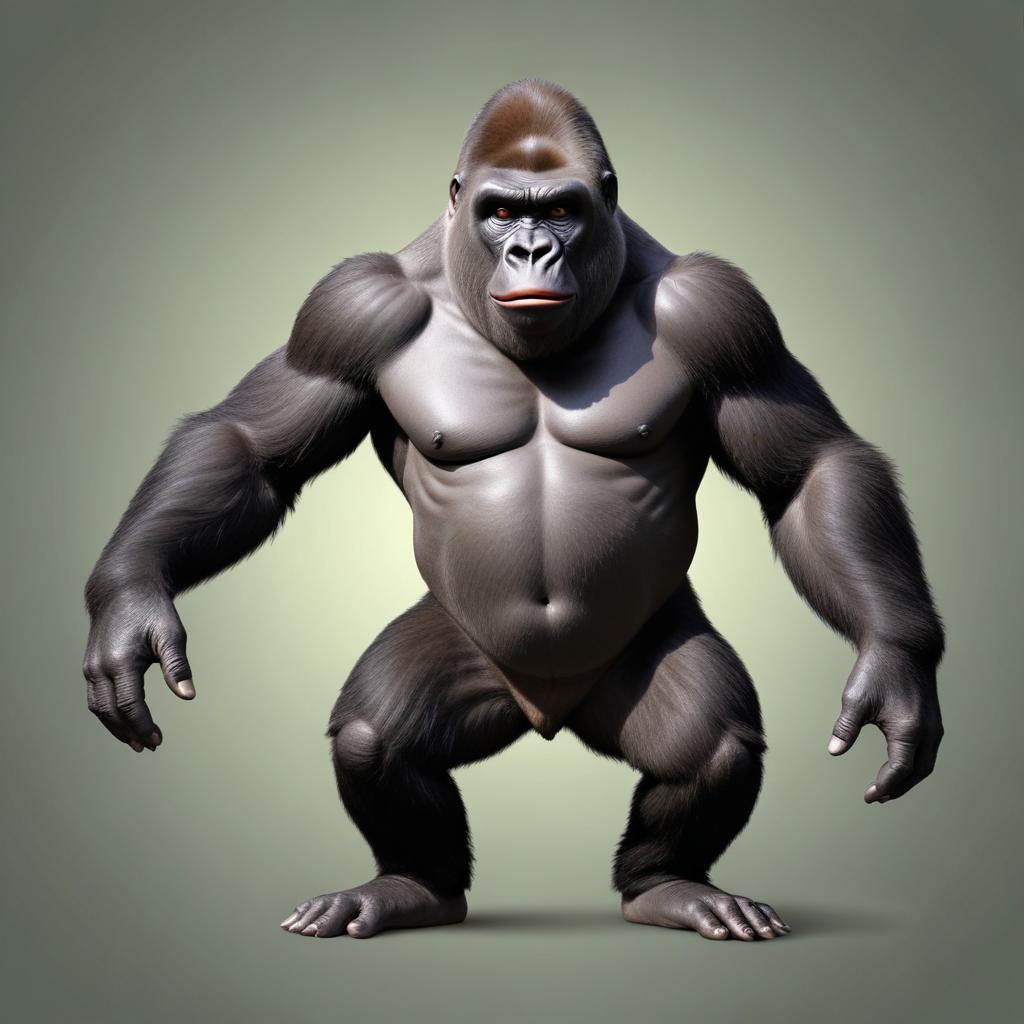 A large gorilla stands in a crouched position