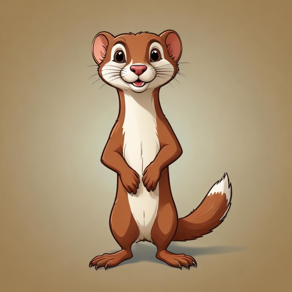 adorable, animal, belly, brown, cartoon, cute, fur, furry, happy, hind, illustration, legs, mammal, smile, standing, weasel, white, wildlife