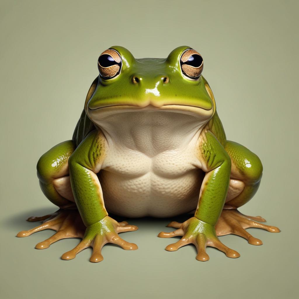 A green frog sits on a green surface