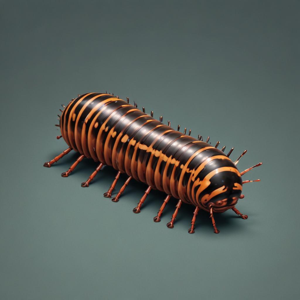 A millipede crawls across a gray surface